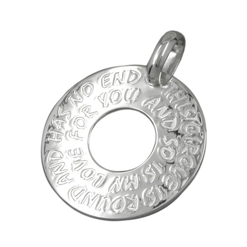- avec la gravure: THIS CIRCLE IS ROUND AND HAS NO END - AND SO IS MY LOVE FOR YOU (Traduction en français: ce bijou est rond et na pas de fin - et ainsi est mon amour pour toi)