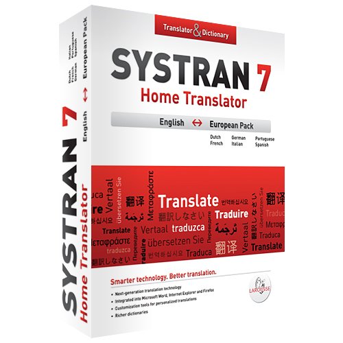 SYSTRAN 7 HOME TRANSLATOR anglais - europe (allemand, espagnol, français, italien, néerlandais, portugais)Le meilleur de la technologie pour des traductions de qualité 2 en 1 : Traduction de textes et Consultation de dictionnaires bilingues Moteur de traduction à double technologie, linguistique et statistique Traduction depuis toute application. Intégré à Microsoft® Word, Internet Explorer, Firefox Alternatives de traduction, Traduction côte à côte, Dictionnaire personnel et bien plus Leader de la traduction automatique depuis plus de 30 ans, SYSTRAN s'est constamment imposé comme le choix des utilisateurs qui demandent les meilleurs résultats de la traduction automatisée. Sa version 7 franchit un nouveau palier dans...